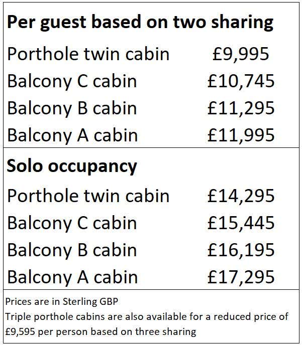 18 June 2024 - 13 days from £9,995 (see price grid in images above)