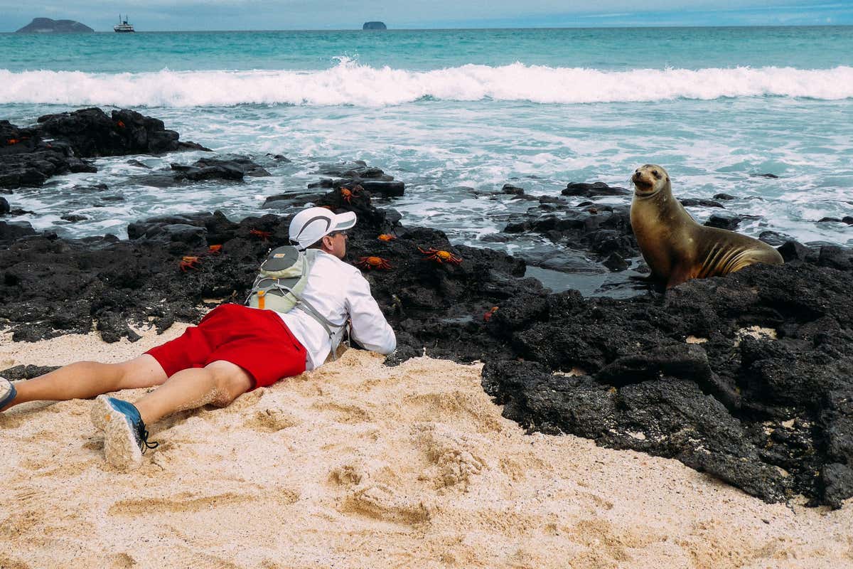 Galapagos sea lions, marine iguanas lounging on the shores, blue-footed boobies patrolling the skies, giant tortoises, Sally Lightfoot crabs and green sea turtles are just a few of the animals native to this fascinating archipelago.